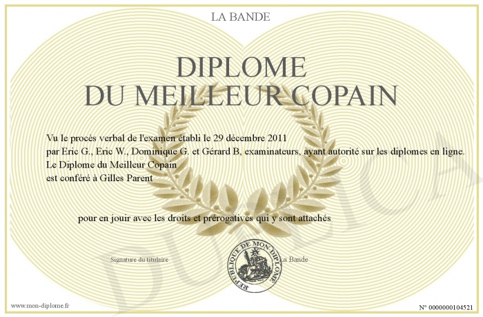 Envoyez par email votre Diplôme du Meilleur Copain personalisé