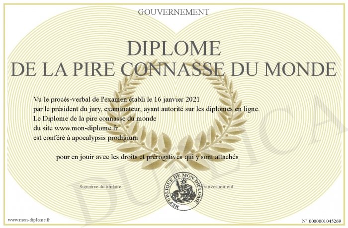 Envoyez par email votre Diplôme de la pire connasse du monde personalisé