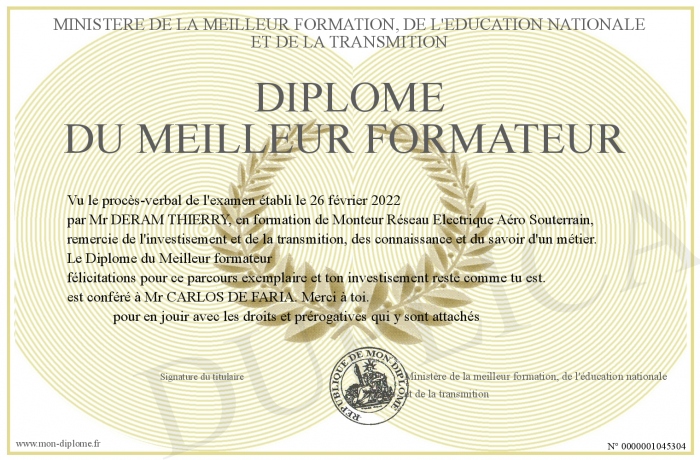 Envoyez par email votre Diplôme du Meilleur formateur personalisé