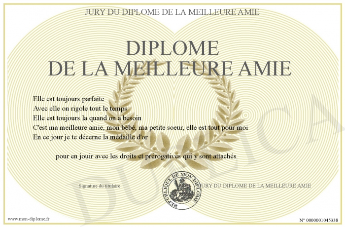 Envoyez par email votre Diplôme de la Meilleure Amie personalisé