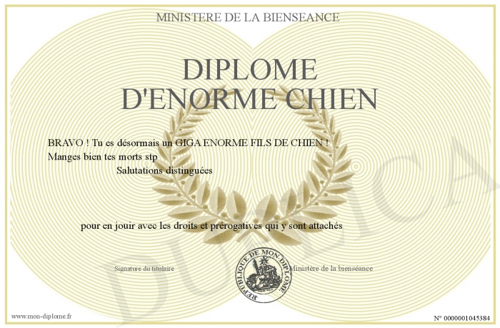 Envoyez par email votre diplôme d'énorme chien personalisé