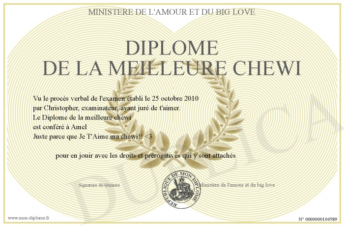 Envoyez par email votre Diplôme de la meilleure chéwi personalisé