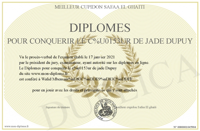 Envoyez par email votre Diplômes pour conquérir le coeur de jade Dupuy personalisé