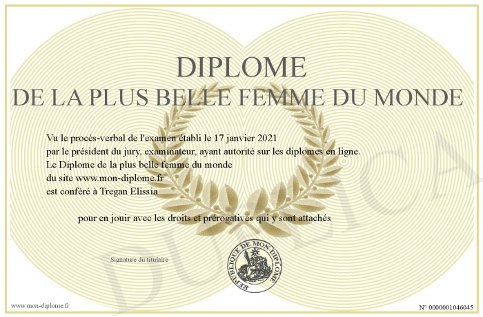 Envoyez par email votre Diplôme de la plus belle femme du monde personalisé