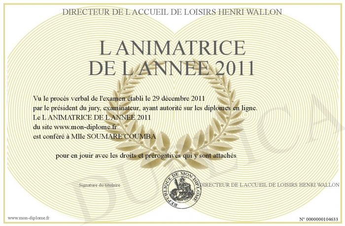 Envoyez par email votre L ANIMATRICE DE L ANNEE 2011 personalisé