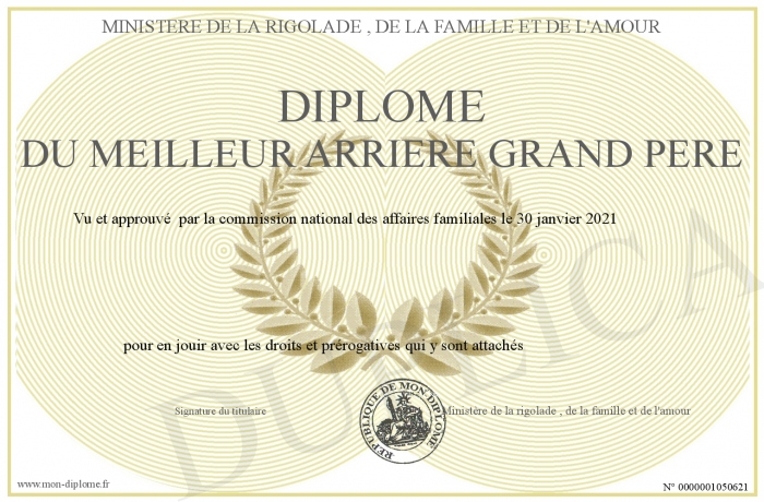 Envoyez par email votre Diplôme du meilleur arrière grand père personalisé