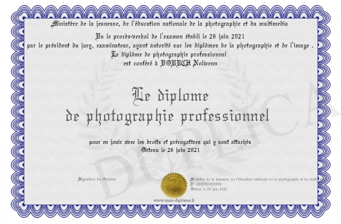 Envoyez par email votre Le diplôme de photographie professionnel personalisé