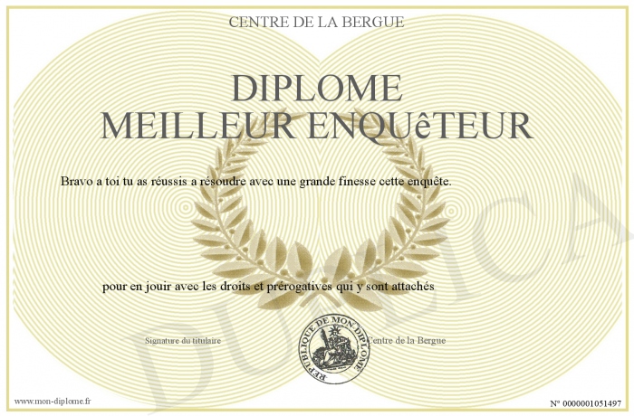 Envoyez par email votre Diplôme meilleur enquêteur personalisé