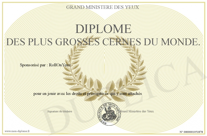 Envoyez par email votre Diplôme des plus grosses cernes du monde. personalisé