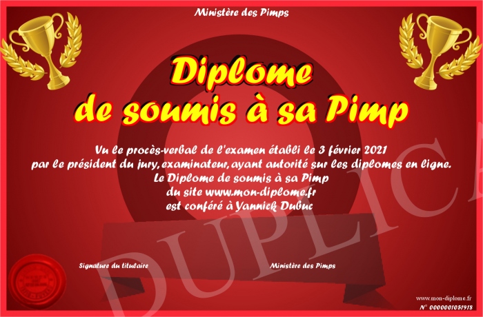 Envoyez par email votre Diplôme de soumis à sa Pimp personalisé