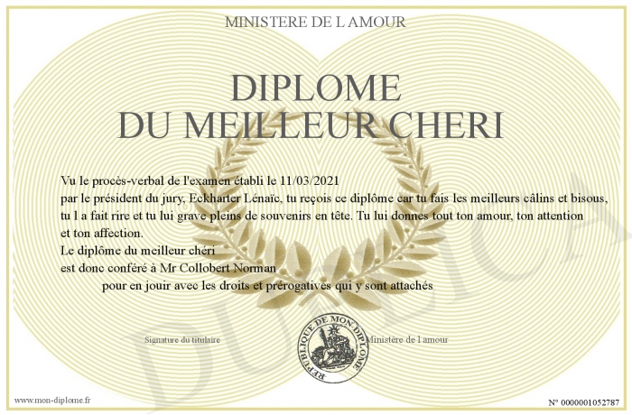 Envoyez par email votre Diplôme du meilleur chéri personalisé
