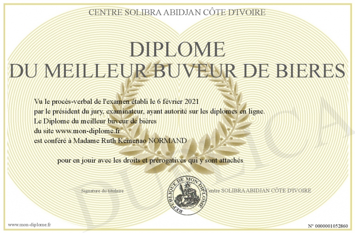 Envoyez par email votre Diplôme du meilleur buveur de bières personalisé