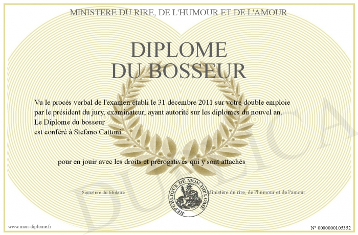 Envoyez par email votre Diplome du bosseur personalisé