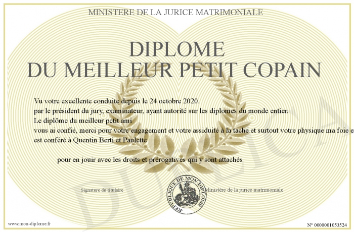 Envoyez par email votre Diplôme du meilleur petit copain personalisé