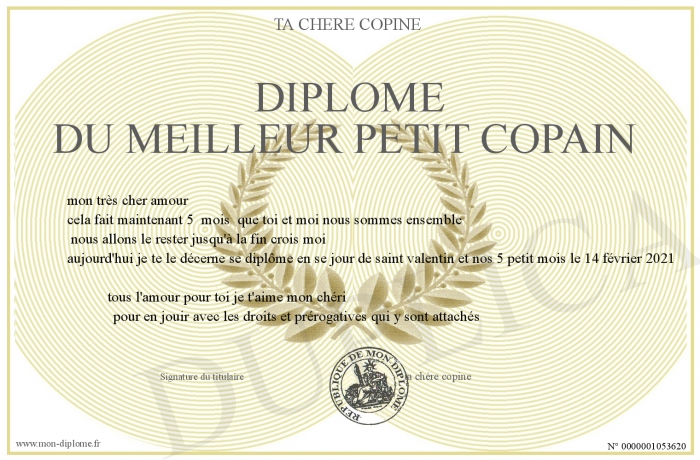 Envoyez par email votre Diplôme du meilleur petit copain personalisé