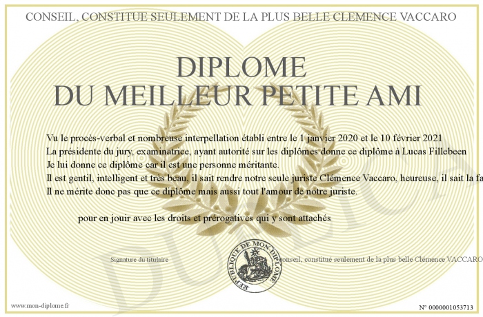Envoyez par email votre Diplôme du meilleur petite ami personalisé