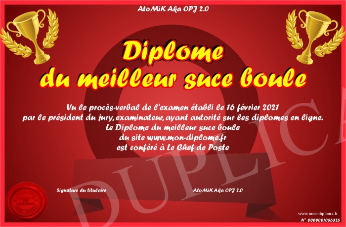 Envoyez par email votre Diplôme du meilleur suce boule personalisé