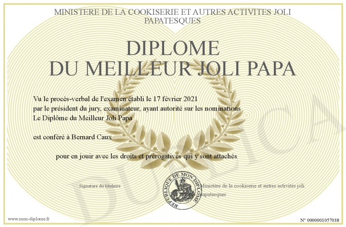 Envoyez par email votre Diplôme du Meilleur Joli Papa personalisé