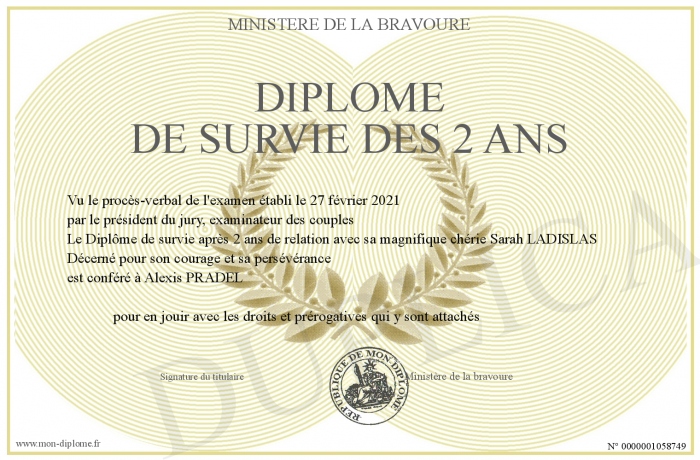 Envoyez par email votre Diplôme de survie des 2 ans personalisé