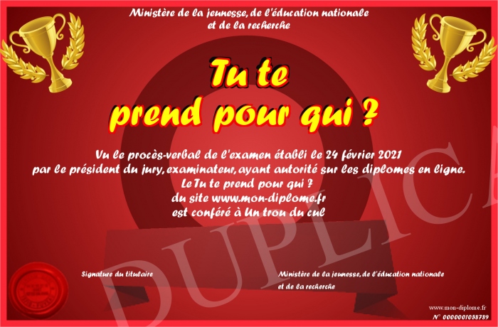 Envoyez par email votre Tu te prend pour qui ? personalisé