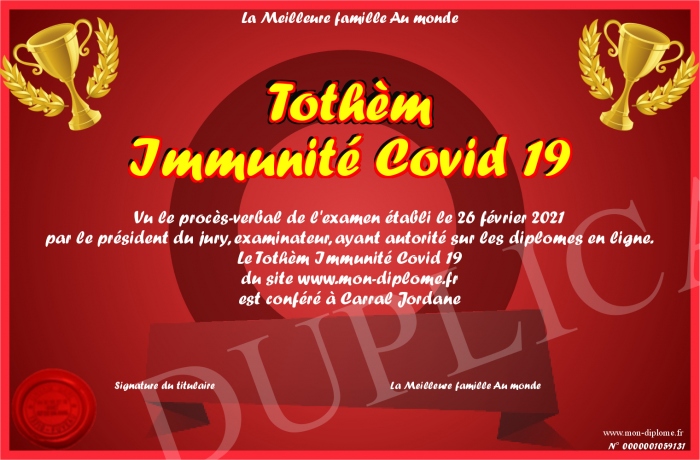 Envoyez par email votre Tothèm Immunité Covid 19 personalisé