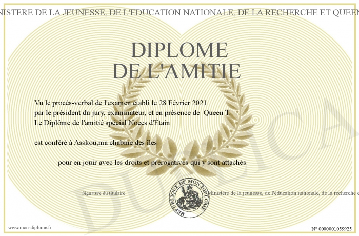 Envoyez par email votre Diplôme de l'amitié personalisé