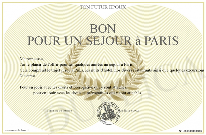 Envoyez par email votre Bon pour un Séjour à Paris personalisé