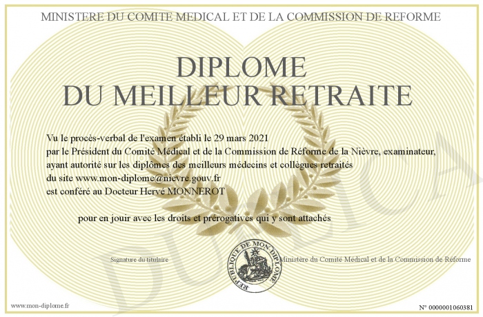 Envoyez par email votre Diplome du meilleur retraité personalisé