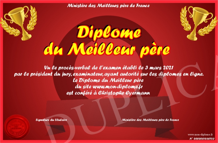 Envoyez par email votre Diplôme du Meilleur père personalisé