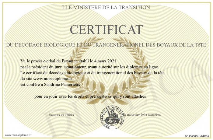 Envoyez par email votre certificat du décodage biologique et du trangenerationel des boyaux de la tête personalisé