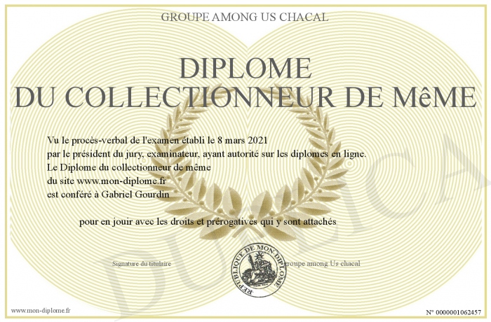 Envoyez par email votre Diplôme du collectionneur de même personalisé