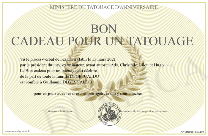 Envoyez par email votre Bon cadeau pour un tatouage personalisé