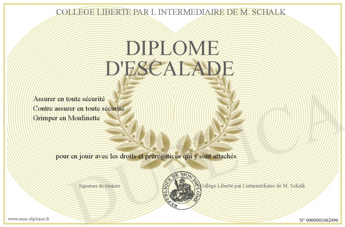 Envoyez par email votre Diplôme d'Escalade personalisé