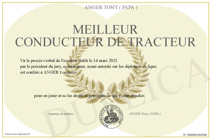 Envoyez par email votre Meilleur conducteur de tracteur personalisé
