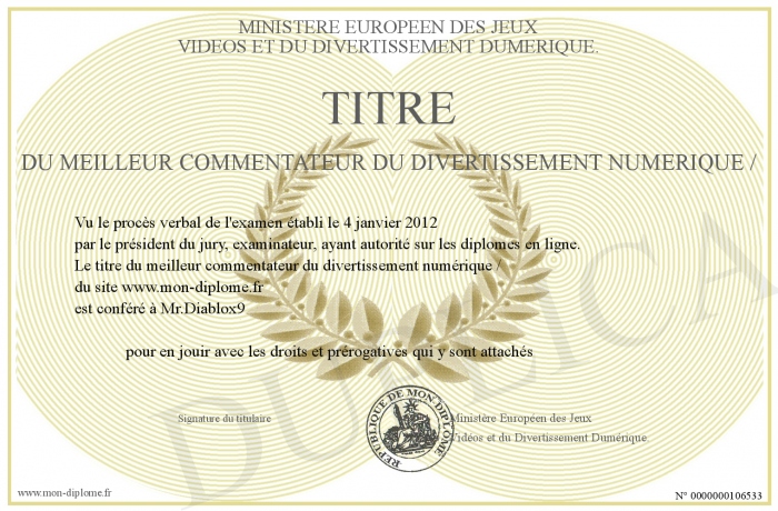 envoyé par le Ministère Européen des Jeux-Vidéos et du Divertissement Dumérique. !