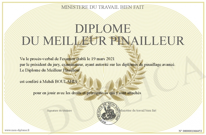 Envoyez par email votre Diplôme du Meilleur Pinailleur personalisé