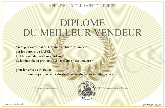 Envoyez par email votre Diplôme du meilleur vendeur personalisé