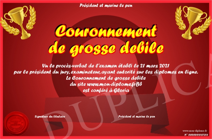 Envoyez par email votre Couronnement de grosse debile personalisé