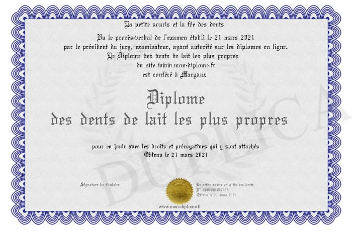 Envoyez par email votre Diplôme des dents de lait les plus propres personalisé