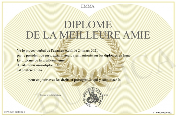 Envoyez par email votre diplôme de la meilleure amie personalisé