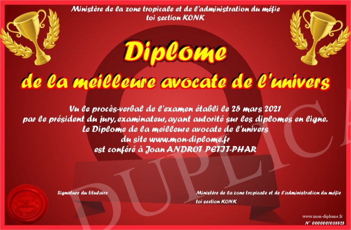 Envoyez par email votre Diplôme de la meilleure avocate de l'univers personalisé
