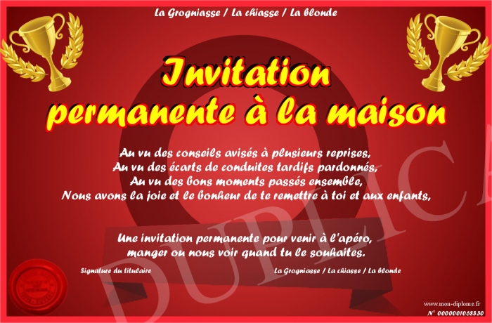 Envoyez par email votre Invitation permanente à la maison personalisé