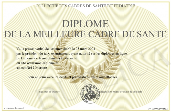 Envoyez par email votre Diplôme de la meilleure cadre de santé personalisé