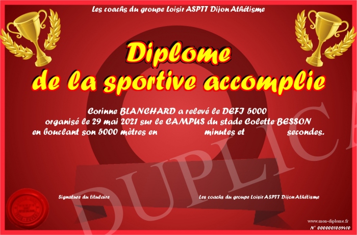 Envoyez par email votre Diplôme de la sportive accomplie personalisé
