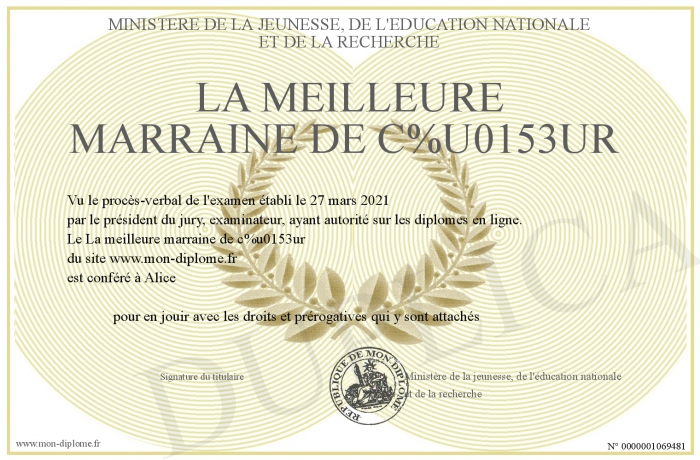 Envoyez par email votre La meilleure marraine de coeur personalisé