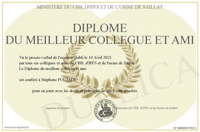 Envoyez par email votre Diplôme du meilleur collègue et ami personalisé