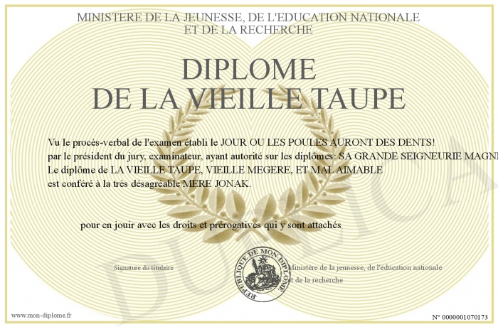 Envoyez par email votre Diplôme de LA VIEILLE TAUPE personalisé