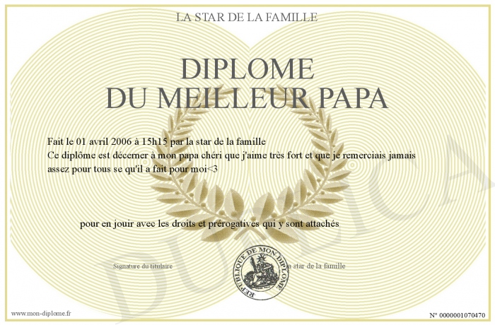Envoyez par email votre Diplôme du meilleur papa personalisé