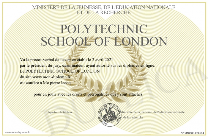 Envoyez par email votre POLYTECHNIC SCHOOL OF LONDON personalisé