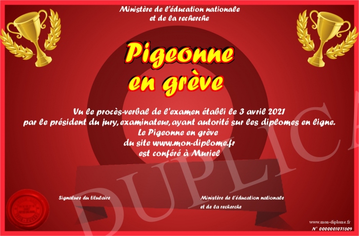 Envoyez par email votre Pigeonne en grève personalisé